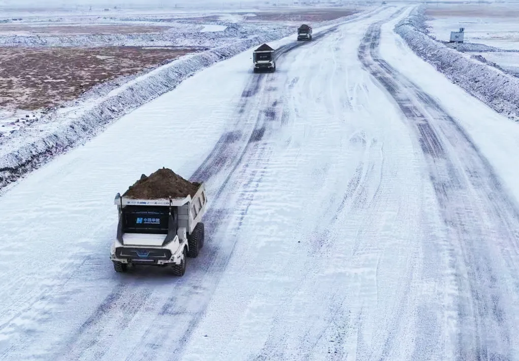▲华能伊敏露天矿无人驾驶电动矿卡助力冬季能源保供