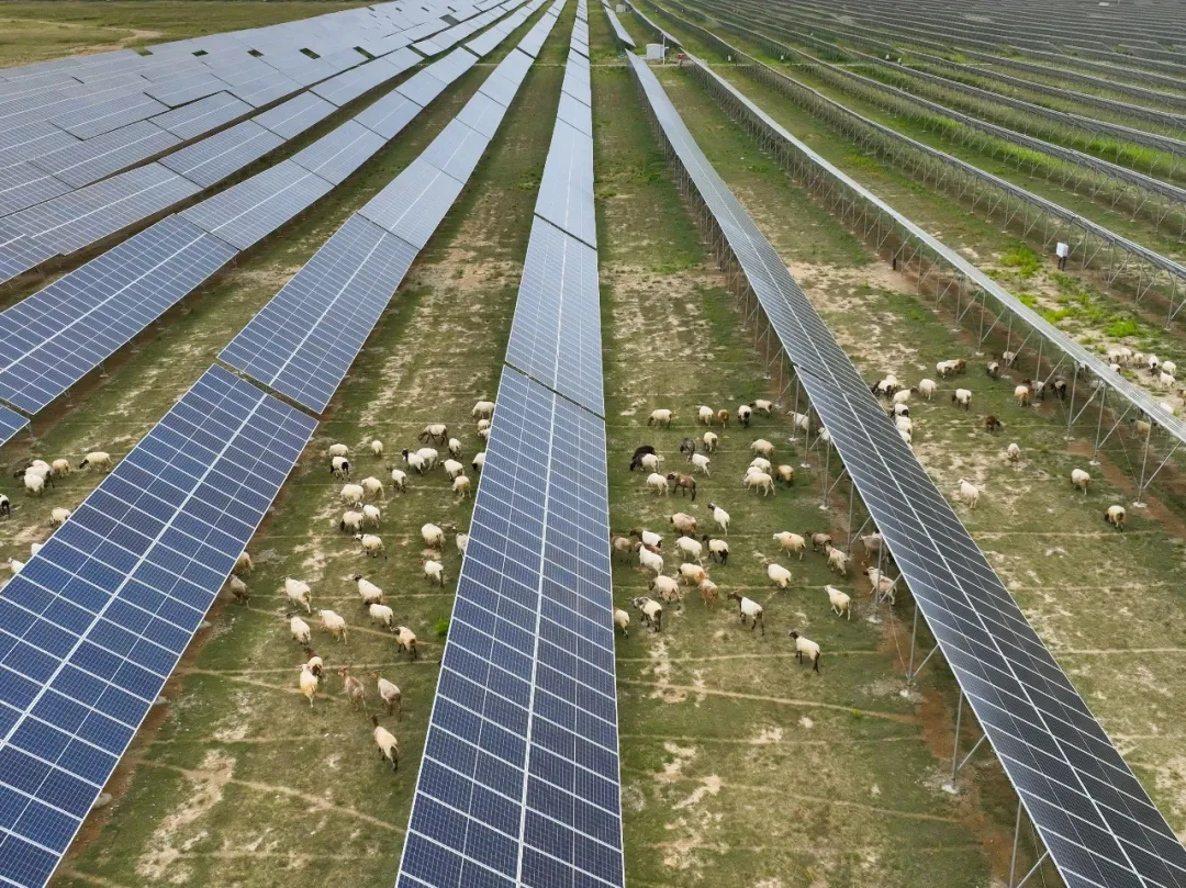 在内蒙古,华能苏计沙地、蒙东伊穆直流外送岭东等国家第三批“沙戈荒”大型风电光伏基地项目相继并网,“沙戈荒”变身“蓝海绿洲”;